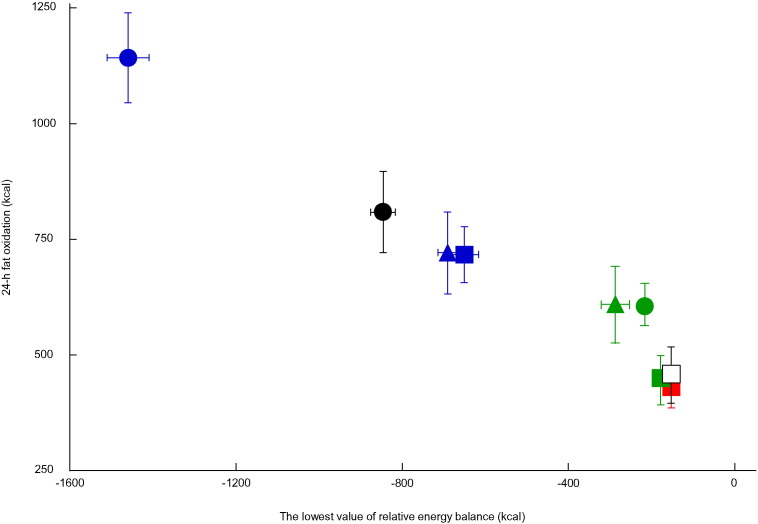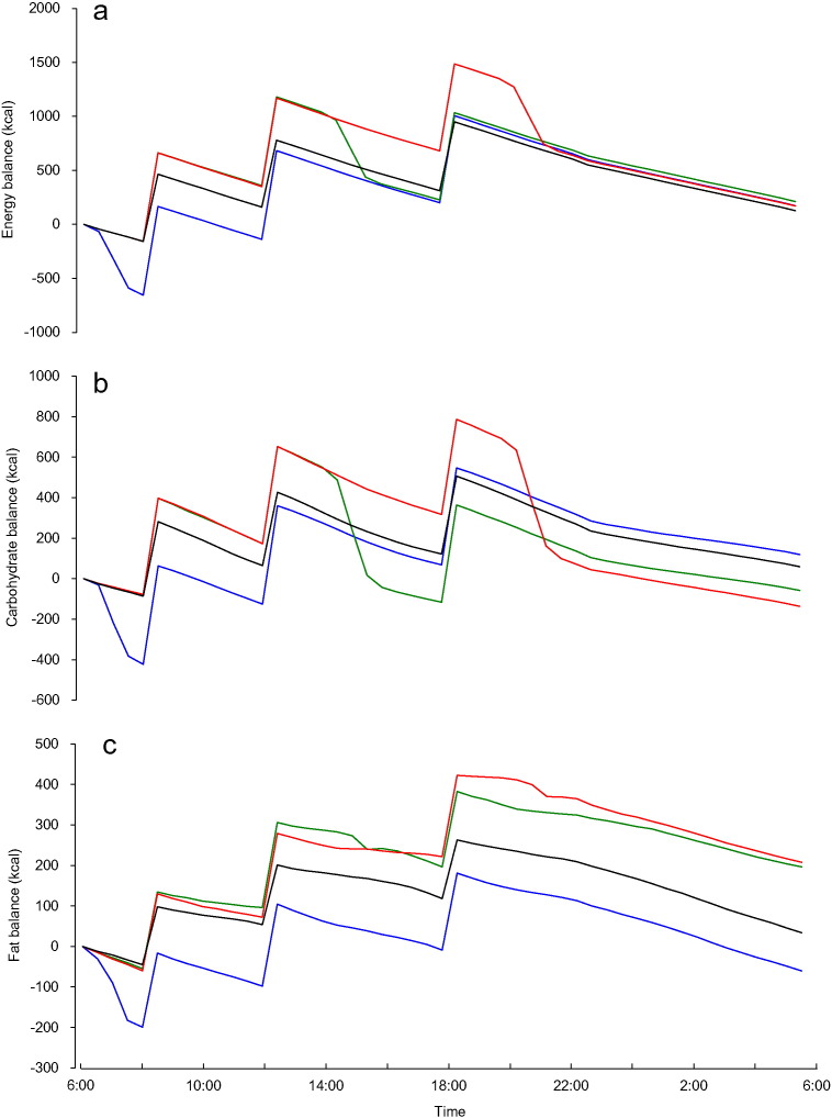 一番下のCが脂肪に関するエネルギーバランスです。青色のグラフを見ると、
