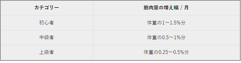 こちらのアランアラゴンモデルを使えば1か月でどのくらいの筋肉が増加するのか予測することができます。