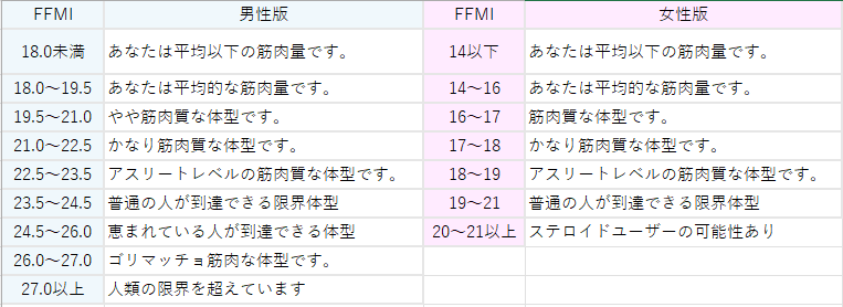 こちらの研究*1では、男性トップボディビルダーの平均的なFFMIは25.4ということがわりました。